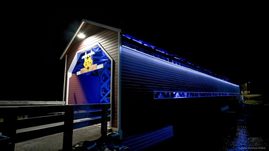 Synopsis : Le Pont Chantant : une installation sonore et lumineuse interactive. Inaugurée en 2022, l’installation numérique Le Pont Chantant est une expérience interactive et ludique qui rend hommage au patrimoine architectural du pont couvert Galipeault de Grande-Vallée ainsi qu’au riche héritage musical de la région.