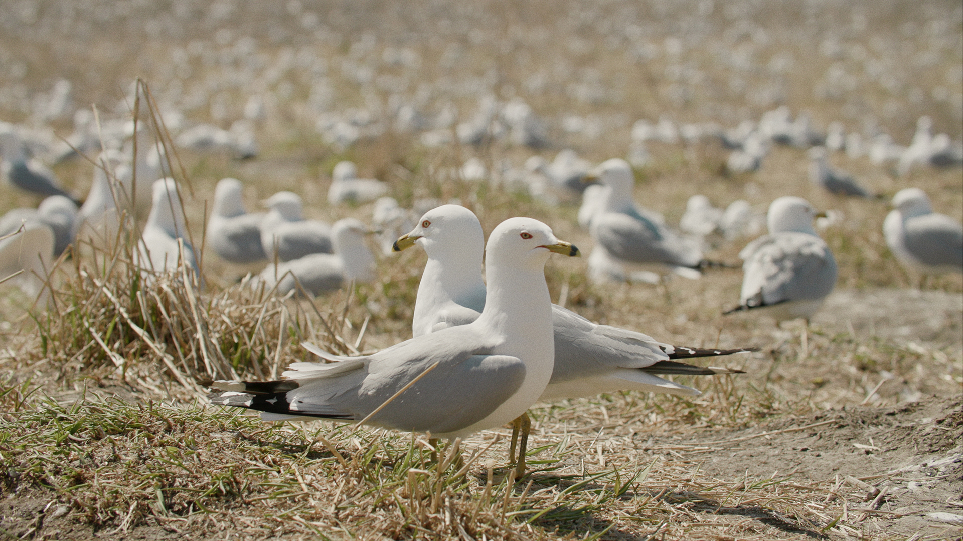 Synopsis : Les héritiers observe dans une intimité saisissante le quotidien d’une colonie de goélands à bec cerclé qui niche chaque année à proximité du plus grand dépotoir canadien pour nourrir leurs oisillons. En alternant les perspectives de la proie et des prédateurs, on accompagne ces mal-aimés au cours d’une saison de reproduction alors qu’ils deviennent victimes d’une collecte de données intrusive et la cible d’un contrôle impitoyable par l’art millénaire de la fauconnerie. Avec une bande sonore et une cinématographie qui laissent s’exprimer les oiseaux, Les héritiers est une expérience sensorielle sur les nouvelles manières de vivre et de mourir dans nos paysages hantés par la consommation et la pollution de masse. Un présage des écologies du futur.